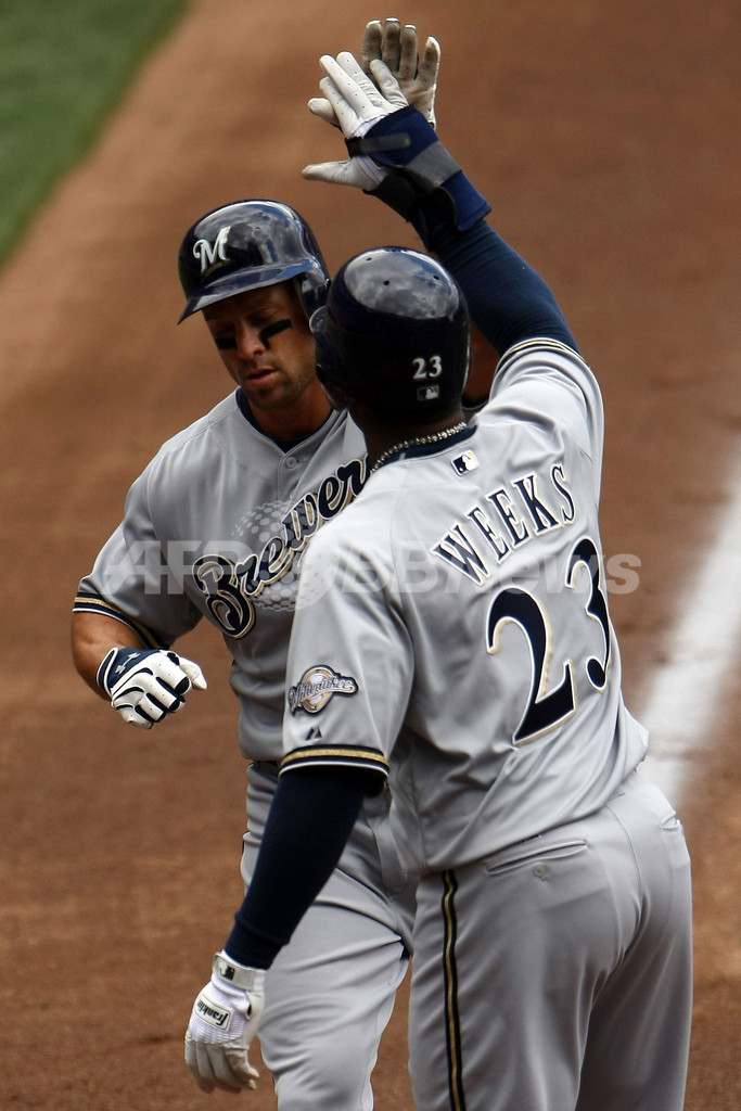 スポーツ 野球 ブルワーズ メッツを降し2連勝 2008年4月14日 12:52 発信地:ニューヨーク/米国 [ 北米 米国 ] このニュースをシェア ‹ › ❮ 8/10 ❯ ニューヨーク・メッツ戦の初回にシーズン第4号となる先制の2点本塁打を放ち、チームメイトのリッキー・ウィークス(%%Rickie Weeks%%、右)に迎えられるミルウォーキー・ブルワーズのゲーブ・キャプラー(%%Gabe Kapler%%)。(c)AFP/Getty Images/Chris McGrath 画像作成中 ! 【4月14日 AFP】08MLB、ニューヨーク・メッツ(New York Mets)vsミルウォーキー・ブルワーズ(Milwaukee Brewers)。試合はブルワーズが9-7でメッツを降し、2連勝を飾った。(c)AFP/Getty Images 野球 一覧へ> メディア・報道関係・法人の方向け 写真・動画 購入のお問合せ>