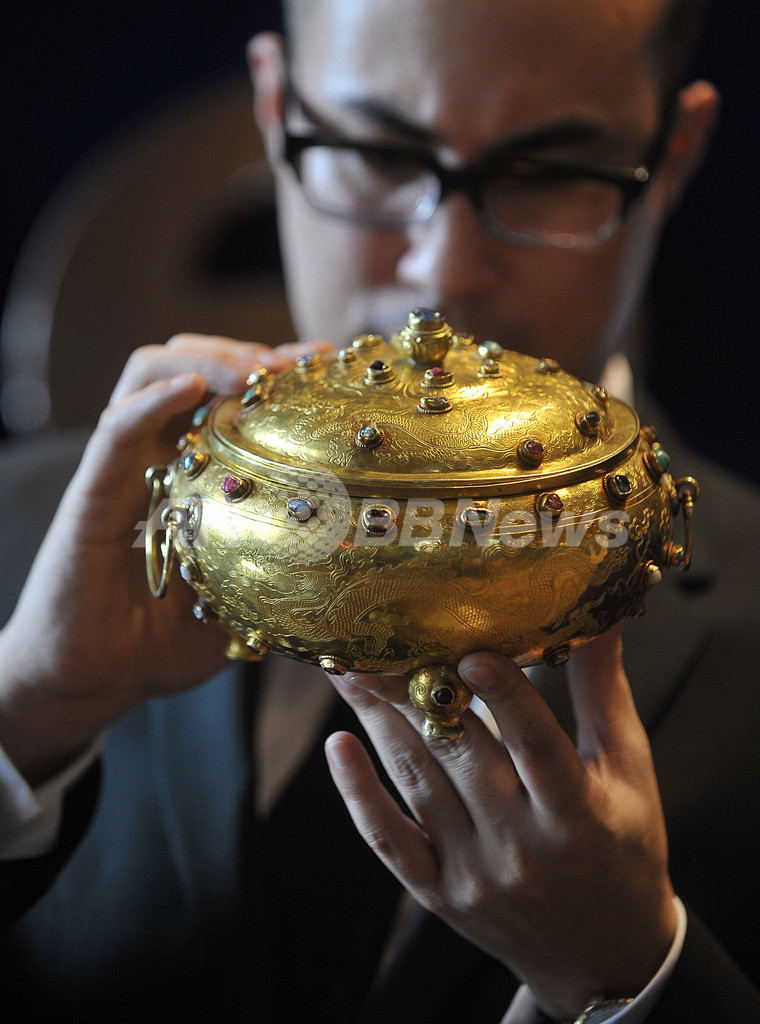 ニュース ライフ 中国明朝の金の三脚香炉、15億円で落札 2008年4月15日 18:40 発信地:香港 このニュースをシェア ‹ › ❮ 1/2 ❯ 香港(Hong Kong)で競売会社サザビーズ(Sotheby’s)のオークションに出展された中国明朝(Ming Dynasty)宣徳(Xuande)時代の金の三脚香炉(2008年4月11日撮影)。(c)AFP/MIKE CLARKE 画像作成中 ! 【AFP】香港(Hong Kong)で11日開催された競売会社サザビーズ(Sotheby's)の2008年度春のオークションで、中国明朝(Ming Dynasty)宣徳(Xuande)時代の金の三脚香炉が出展された。1億1680万7500香港ドル(約15億1500万円)で落札され、中国産金属細工としては過去最高を記録した。(c)AFP ライフ 一覧へ> メディア・報道関係・法人の方向け 写真・動画 購入のお問合せ>