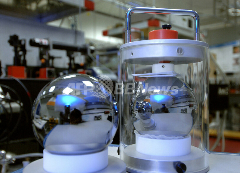 【AFP】ドイツ中部ブラウンシュバイク(Braunschweig)にあるドイツ計量標準総合センター(German National Metrology Institute)で現在、直径10センチの球体を用い、現在の計測標準よりも望ましい新標準を開発するプロジェクト「アボガドロ・プロジェクト(Avogadro Project)」が進められている。現在の標準では、パリ(Paris)で厳重保管されている白金合金製分銅が1キロと定義されている。(c)AFP