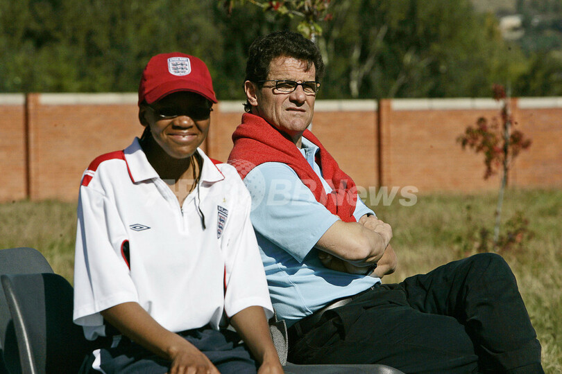 【AFP】サッカーイングランド代表のファビオ・カペッロ(Fabio Capello)監督は15日、2010年サッカーW杯南アフリカ大会(2010 World Cup)に先立ちアフリカ人指導者の質の向上を目指す国際サッカー連盟(Federation Internationale de Football Association、FIFA)のプログラムのため、アフリカ南部の国レソト(Lesotho)を訪れ、首都マセル(Maseru)のレソト・サッカー協会(Lesotho Football Association、LEFA)で、現地の子供たちの練習を視察した。(c)AFP