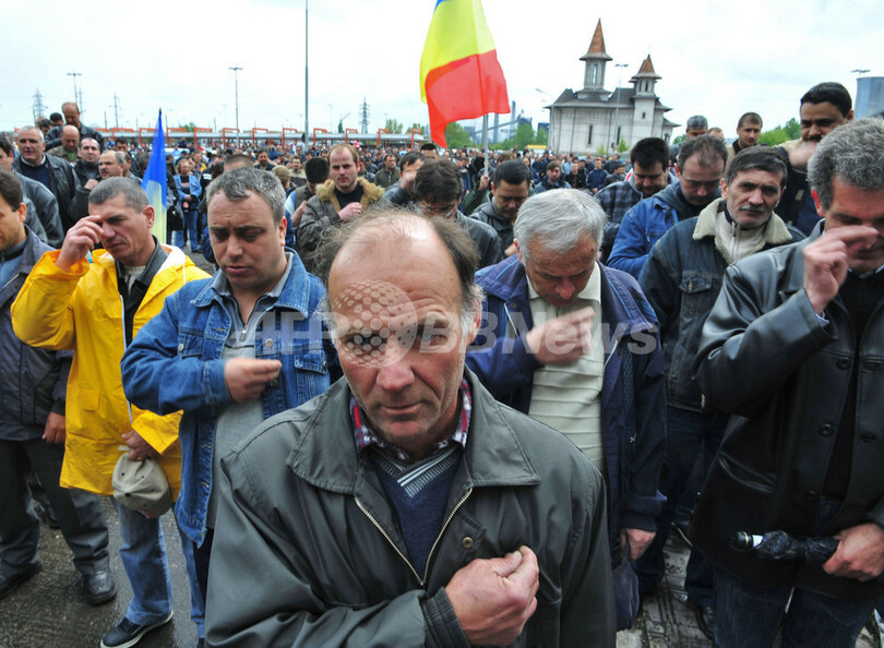【4月17日 AFP】ルーマニアの首都ブカレスト(Bucharest)北東約250キロの都市ガラツィ(Galati)で16日、鉄鋼世界最大手アルセロール・ミタル(Arcelor Mittal)の従業員が賃上げを求めてストライキを行った。同工場前には従業員1000人近くが集結し、「団結」と「連帯」を掛け声に賃上げを求めた。