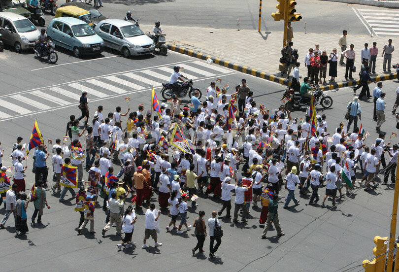 特にチベット亡命政府やダライ・ラマ14世を受け入れ10万人以上の亡命チベット人を抱えるインドでは、亡命チベット人らによる抗議活動が懸念され、ニューデリー市は治安警官ら約1万6000人を動員する厳戒態勢で聖火リレーに臨んだ。