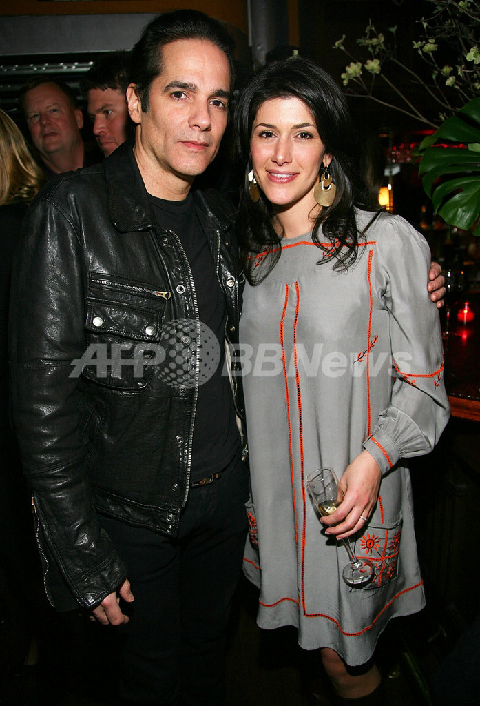 ニューヨーク(New York)のトライベッカ・シネマ(Tribeca Cinemas)で開催された映画『Anamorph』プレミア上映会のアフターパーティーに登場した、プロデューサーのMarissa McMahon(右)と出演俳優のYul Vasquez(2008年4月16日撮影)。(c)AFP/Getty Images/Astrid Stawiarz