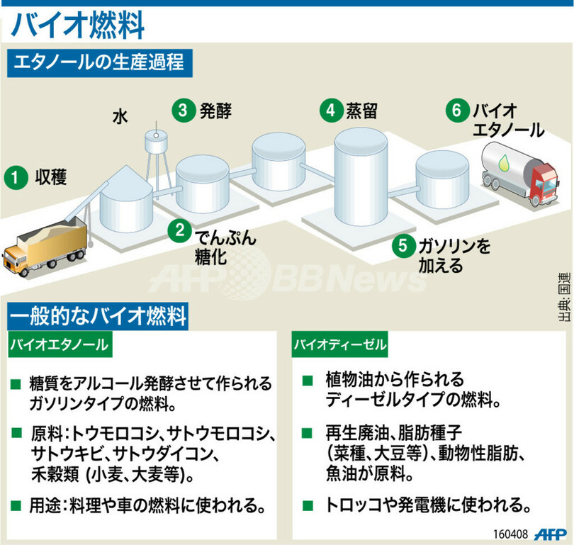 ニュース 環境・科学 図解 【図解】石油代替燃料として注目されるバイオ燃料 2008年4月18日 23:36 発信地:ブラジリア/ブラジル [ 中南米 ブラジル ] このニュースをシェア (c)AFP 【4月18日 AFP】図は、石油の代替燃料として注目されているバイオ燃料について示したもの。(c)AFP<ニュース解説画像一覧へ> 環境・科学 一覧へ> メディア・報道関係・法人の方向け 写真・動画 購入のお問合せ>