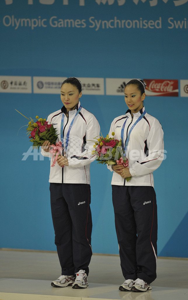 【4月19日 AFP】北京五輪シンクロナイズドスイミング最終予選(The Olympic Games Synchronized Swimming Qualification Tournament 2008)・デュエット、フリールーティン(FR)。テクニカルルーティーン(TR)で2位につけた日本の原田早穂(Saho Harada)/鈴木絵美子(Emiko Suzuki)組は、同種目で3位となる48.084点を記録し、合計96.001点でオープン参加の中国に次ぐ3位に入り五輪への出場権を獲得した。(c)AFP