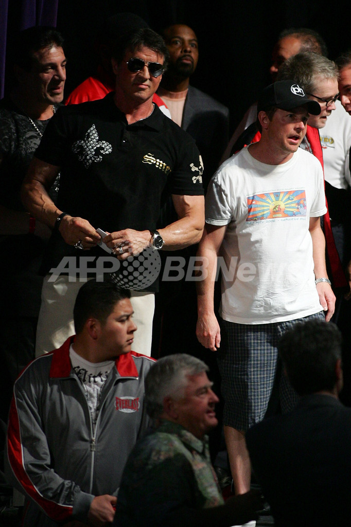 【4月19日 AFP】ボクシング元4冠統一世界ミドル級王者バーナード・ホプキンス(Bernard Hopkins、米国)とWBA/WBC/WBO世界スーパーミドル級王者ジョー・カルザゲ(Joe Calzaghe、英国)は18日、対戦を19日に控えラスベガスのホテル、プラネット・ハリウッド・リゾート・アンド・カジノ(Planet Hollywood Resort & Casino)で公開計量に臨んだ。(c)AFP/Getty Images