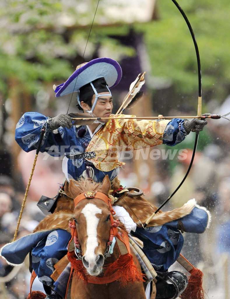 ニュース ライフ 東京で流鏑馬開かれる 2008年4月20日 0:26 発信地:東京 [ アジア・オセアニア 東京 ] このニュースをシェア ‹ › ❮ 6/6 ❯ 都内の公園で行われた流鏑馬(やぶさめ)で、走る馬の背から的を狙う射手(2008年4月19日撮影)。(c)AFP/Yoshikazu TSUNO 画像作成中 ! 【4月20日 AFP】都内の公園で19日、流鏑馬(やぶさめ)が行われた。武士の衣装を着た射手たちが走る馬の背から的を狙った。(c)AFP ライフ 一覧へ> メディア・報道関係・法人の方向け 写真・動画 購入のお問合せ>