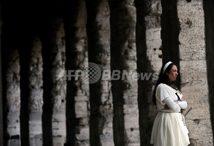 ニュース ライフ ローマの「誕生日」を記念して、古代の結婚式を再現 2008年4月21日 5:11 発信地:ローマ/イタリア [ ヨーロッパ イタリア ] このニュースをシェア ‹ › ❮ 22/23 ❯ イタリア・ローマ(Rome)のマルチェロ劇場(Theater of Marcellus)前で、伝説では紀元前753年4月21日とされるローマの創建を祝うために再現された、古代ローマの結婚式に出演するため、古代ローマ人に扮装(ふんそう)した女性(2008年4月19日撮影)。(c)AFP/Filippo Monteforte 画像作成中 ! 【4月21日 AFP】伝説では紀元前753年4月21日に創建されたとされるイタリアのローマ(Rome)。これを記念して19日、市内のマルチェロ劇場(Theater of Marcellus)前で、俳優らが古代ローマ人に扮(ふん)し、当時の結婚式を再現した。(c)AFP ライフ 一覧へ> メディア・報道関係・法人の方向け 写真・動画 購入のお問合せ>