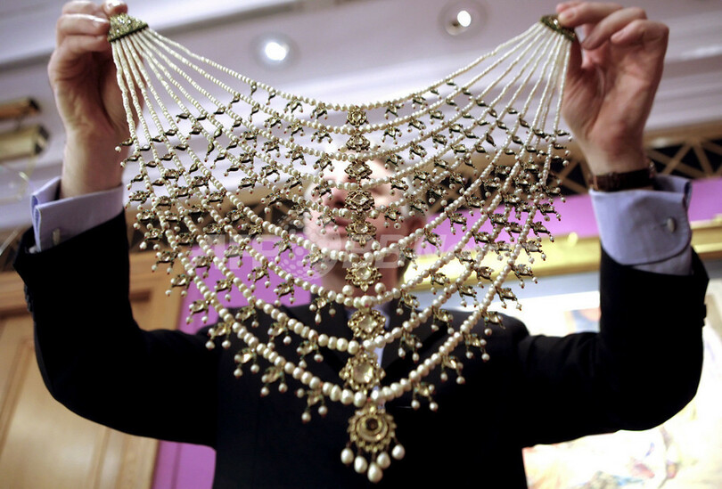 ネックレスはUAEの首長の一人だった故ザイド・ビン・スルタン・ナハヤン(Zayed bin Sultan al-Nahayan)前アブダビ(Abu Dhabi)首長から贈られたもので、推定落札価格は8万~12万ドル(約830万~1244万円)。(c)AFP
