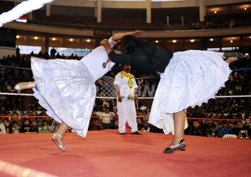 ニュース ライフ こぼれ話 ボリビア先住民、民族衣装で女子レスリング、場外乱闘もあり 2008年4月21日 14:33 発信地:ラパス/ボリビア [ 中南米 ボリビア ] このニュースをシェア ‹ › ❮ 13/24 ❯ ボリビアのラパス(La Paz)で、伝統衣装でフリースタイルのレスリングをする先住民の女性たち(2008年4月13日撮影)。(c)AFP/AIZAR RALDES 画像作成中 ! 【4月21日 AFP】ボリビアのラパス(La Paz)で13日、先住民アイマラ(Aymara)族の女性達たちが伝統衣装に身を包みフリースタイルのレスリングを行うイベントが開催された。(c)AFP ライフ 一覧へ> メディア・報道関係・法人の方向け 写真・動画 購入のお問合せ>