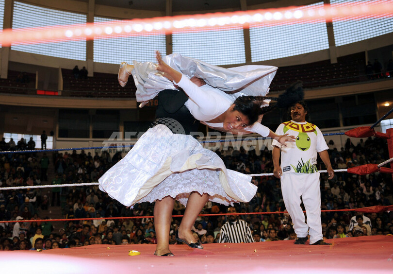 ニュース ライフ こぼれ話 ボリビア先住民、民族衣装で女子レスリング、場外乱闘もあり 2008年4月21日 14:33 発信地:ラパス/ボリビア [ 中南米 ボリビア ] このニュースをシェア ‹ › ❮ 12/24 ❯ ボリビアのラパス(La Paz)で、伝統衣装でフリースタイルのレスリングをする先住民の女性たち(2008年4月13日撮影)。(c)AFP/AIZAR RALDES 画像作成中 ! 【4月21日 AFP】ボリビアのラパス(La Paz)で13日、先住民アイマラ(Aymara)族の女性達たちが伝統衣装に身を包みフリースタイルのレスリングを行うイベントが開催された。(c)AFP ライフ 一覧へ> メディア・報道関係・法人の方向け 写真・動画 購入のお問合せ>