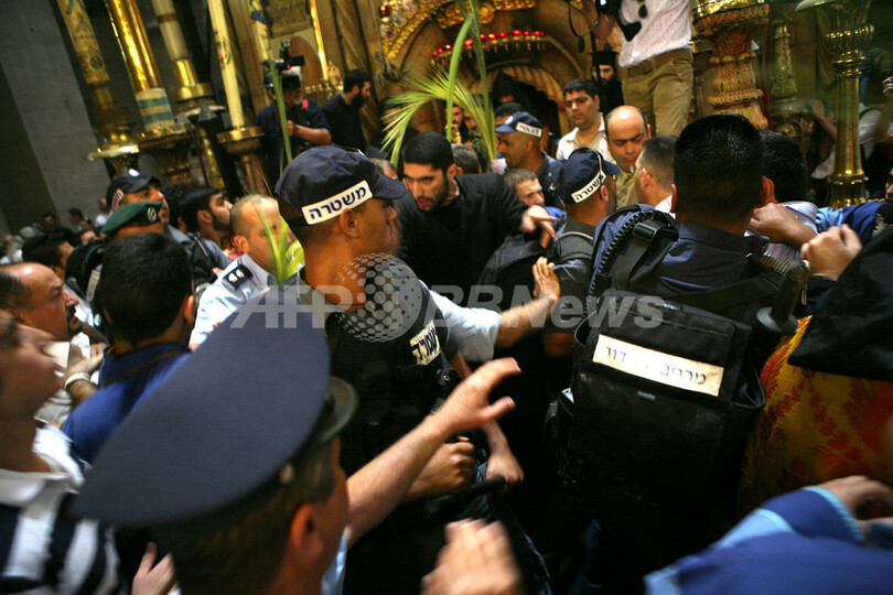 【4月21日 AFP】イスラエルのエルサレム(Jerusalem)旧市街にある聖墳墓教会(Church of the Holy Sepulchre)で20日、キリスト教正教会の「聖枝祭(Orthodox Palm Sunday)」のさなかに、礼拝に出席していたギリシャ人とアルメニア人数十人の間で乱闘が起こり、警官隊が仲裁のために教会内になだれ込む騒ぎとなった。