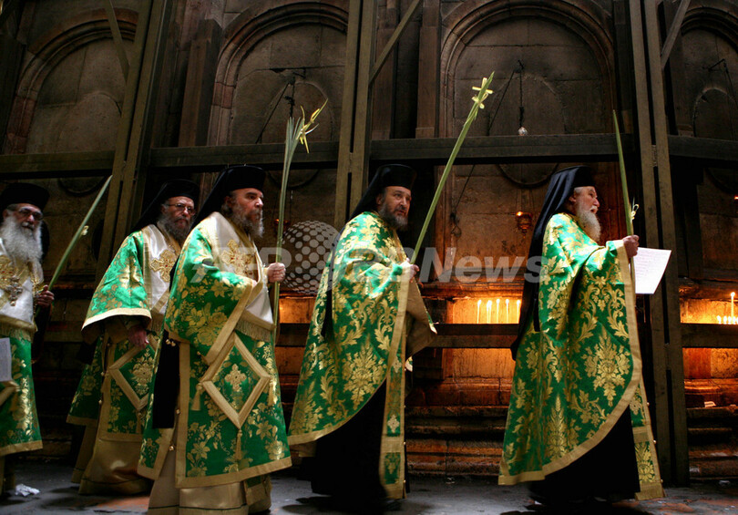 【4月21日 AFP】イスラエルのエルサレム(Jerusalem)旧市街にある聖墳墓教会(Church of the Holy Sepulchre)で20日、キリスト教正教会の「聖枝祭(Orthodox Palm Sunday)」のさなかに、礼拝に出席していたギリシャ人とアルメニア人数十人の間で乱闘が起こり、警官隊が仲裁のために教会内になだれ込む騒ぎとなった。
