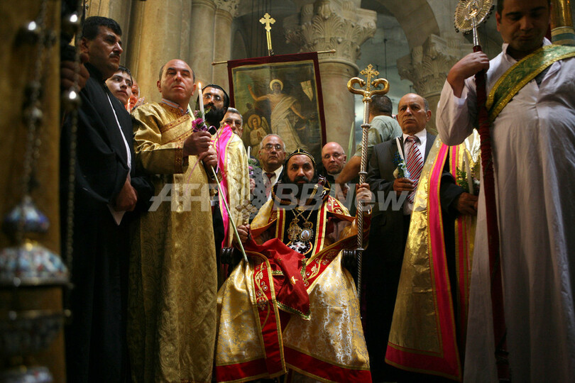 【4月21日 AFP】イスラエルのエルサレム(Jerusalem)旧市街にある聖墳墓教会(Church of the Holy Sepulchre)で20日、キリスト教正教会の「聖枝祭(Orthodox Palm Sunday)」のさなかに、礼拝に出席していたギリシャ人とアルメニア人数十人の間で乱闘が起こり、警官隊が仲裁のために教会内になだれ込む騒ぎとなった。
