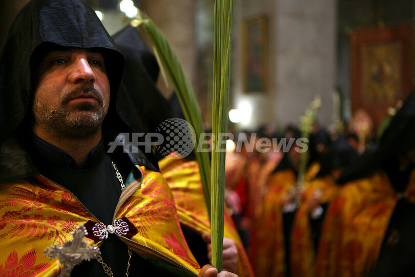 【4月21日 AFP】イスラエルのエルサレム(Jerusalem)旧市街にある聖墳墓教会(Church of the Holy Sepulchre)で20日、キリスト教正教会の「聖枝祭(Orthodox Palm Sunday)」のさなかに、礼拝に出席していたギリシャ人とアルメニア人数十人の間で乱闘が起こり、警官隊が仲裁のために教会内になだれ込む騒ぎとなった。