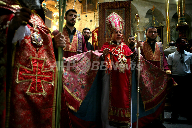 【4月21日 AFP】イスラエルのエルサレム(Jerusalem)旧市街にある聖墳墓教会(Church of the Holy Sepulchre)で20日、キリスト教正教会の「聖枝祭(Orthodox Palm Sunday)」のさなかに、礼拝に出席していたギリシャ人とアルメニア人数十人の間で乱闘が起こり、警官隊が仲裁のために教会内になだれ込む騒ぎとなった。