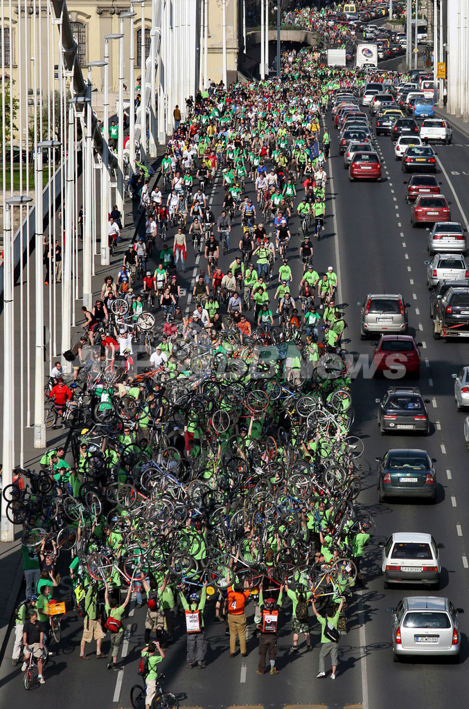 ニュース 環境・科学 自転車で埋め尽くされる道路、ハンガリーで環境デモ 2008年4月22日 15:32 発信地:ブダペスト/ハンガリー [ ヨーロッパ ハンガリー ] このニュースをシェア ‹ › ❮ 1/6 ❯ ハンガリー・ブダペスト(Budapest)で「クリティカル・マス(Critical Mass)」と呼ばれる環境デモに参加する人たち(2008年4月20日撮影)。(c)AFP/BALINT PORNECZI 画像作成中 ! 【4月22日 AFP】ハンガリーのブダペスト(Budapest)で20日、「クリティカル・マス(Critical Mass)」と呼ばれる環境デモが行われ、世界中から5万人以上が参加した。緑色のTシャツを着た参加者たちは自転車に乗ったり自転車を持ち上げたりして、環境問題を訴えた。(c)AFP 環境・科学 一覧へ> メディア・報道関係・法人の方向け 写真・動画 購入のお問合せ>