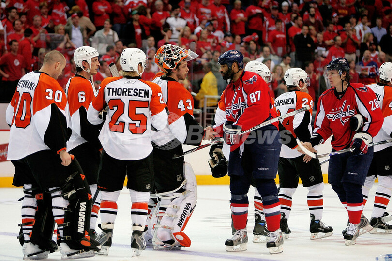 スポーツ ウインタースポーツ フライヤーズ キャピタルズとの接戦制し準決勝へ 2008年4月23日 15:18 発信地:ワシントンDC/米国 [ 北米 米国 ] このニュースをシェア ‹ › ❮ 3/7 ❯ 試合後に握手を交わすキャピタルズのドナルド・ブラッシャー(%%Donald Brashear%%、中央右)とフライヤーズのマーティン・バイロン(%%Martin Biron%%、中央左)。(2008年4月22日撮影)(c)AFP/Getty Images/Len Redkoles 画像作成中 ! 【4月23日 AFP】07-08NHL、東カンファレンス・1回戦。ワシントン・キャピタルズ(Washington Capitals)vsフィラデルフィア・フライヤーズ(Philadelphia Flyers)、第7戦。試合はジャフリー・ルーパル(Joffrey Lupul)がオーバータイムにパワープレイゴールを決め、フライヤーズが3-2でキャピタルズを下し4勝目を挙げて準決勝へ進出を決めた。(c)AFP ウインタースポーツ 一覧へ> メディア・報道関係・法人の方向け 写真・動画 購入のお問合せ>