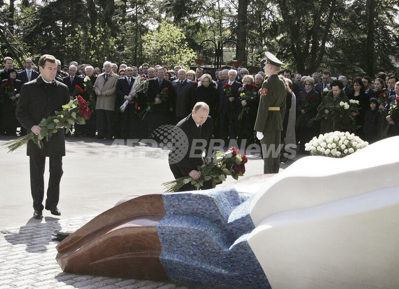 ニュース 政治・経済 エリツィン前露大統領1周忌、式典にプーチン大統領ら参列 記念碑も公開 2008年4月24日 0:23 発信地:モスクワ/ロシア [ ロシア・CIS ロシア ] このニュースをシェア ‹ › ❮ 6/6 ❯ モスクワ(Moscow)に新しく建てられた故ボリス・エリツィン(Boris Yeltsin)前露大統領の記念碑前で行われた1周忌の式典で、献花するウラジーミル・プーチン(Vladimir Putin)大統領(中央)とドミトリー・メドベージェフ(Dmitry Medvedev)次期大統領(左、2008年4月23日撮影)。(c)AFP/KREMLIN/RIA NOVOSTI/MIKHAIL KLIMENTYEV 画像作成中 ! 【4月24日 AFP】ロシアの故ボリス・エリツィン(Boris Yeltsin)前大統領の1周忌となった23日、モスクワ(Moscow)で新しく建てられた前大統領の記念碑が公開され、式典が行われた。ウラジーミル・プーチン(Vladimir Putin)大統領やドミトリー・メドベージェフ(Dmitry Medvedev)次期大統領らが参列し、献花した。(c)AFP 政治・経済 一覧へ> メディア・報道関係・法人の方向け 写真・動画 購入のお問合せ>