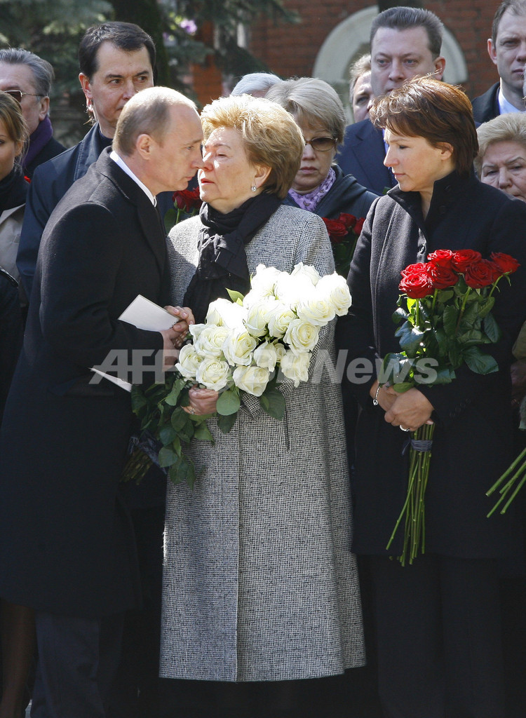 ニュース 政治・経済 エリツィン前露大統領1周忌、式典にプーチン大統領ら参列 記念碑も公開 2008年4月24日 0:23 発信地:モスクワ/ロシア [ ロシア・CIS ロシア ] このニュースをシェア ‹ › ❮ 3/6 ❯ モスクワ(Moscow)に新しく建てられた故ボリス・エリツィン(Boris Yeltsin)前露大統領の記念碑前で行われた1周忌の式典で、ナイナ(Naina Yeltsin)夫人(中央)に哀悼の意を表するウラジーミル・プーチン(Vladimir Putin)大統領(左、2008年4月23日撮影)。(c)AFP 画像作成中 ! 【4月24日 AFP】ロシアの故ボリス・エリツィン(Boris Yeltsin)前大統領の1周忌となった23日、モスクワ(Moscow)で新しく建てられた前大統領の記念碑が公開され、式典が行われた。ウラジーミル・プーチン(Vladimir Putin)大統領やドミトリー・メドベージェフ(Dmitry Medvedev)次期大統領らが参列し、献花した。(c)AFP 政治・経済 一覧へ> メディア・報道関係・法人の方向け 写真・動画 購入のお問合せ>