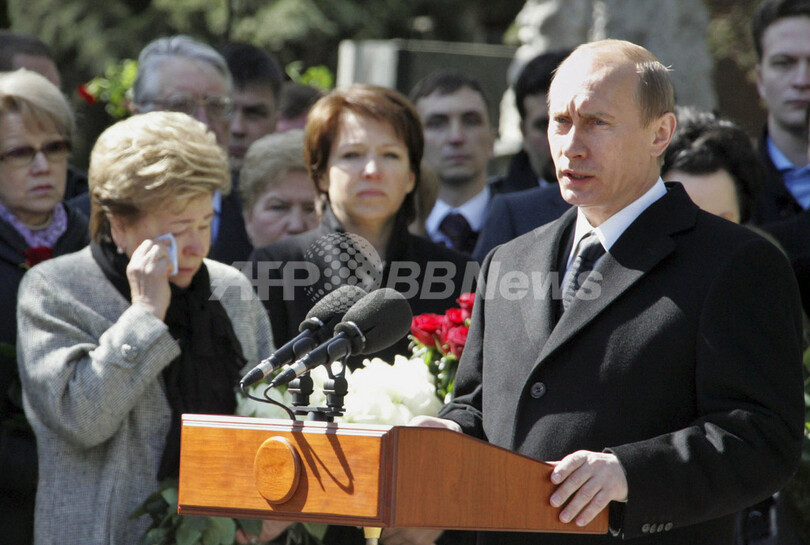 ニュース 政治・経済 エリツィン前露大統領1周忌、式典にプーチン大統領ら参列 記念碑も公開 2008年4月24日 0:23 発信地:モスクワ/ロシア [ ロシア・CIS ロシア ] このニュースをシェア ‹ › ❮ 2/6 ❯ モスクワ(Moscow)に新しく建てられた故ボリス・エリツィン(Boris Yeltsin)前露大統領の記念碑前で行われた1周忌の式典で、ウラジーミル・プーチン(Vladimir Putin)大統領(右)の演説の際に、涙を流すナイナ(Naina Yeltsin)夫人(左、2008年4月23日撮影)。(c)AFP/KREMLIN/RIA NOVOSTI/MIKHAIL KLIMENTYEV 画像作成中 ! 【4月24日 AFP】ロシアの故ボリス・エリツィン(Boris Yeltsin)前大統領の1周忌となった23日、モスクワ(Moscow)で新しく建てられた前大統領の記念碑が公開され、式典が行われた。ウラジーミル・プーチン(Vladimir Putin)大統領やドミトリー・メドベージェフ(Dmitry Medvedev)次期大統領らが参列し、献花した。(c)AFP 政治・経済 一覧へ> メディア・報道関係・法人の方向け 写真・動画 購入のお問合せ>