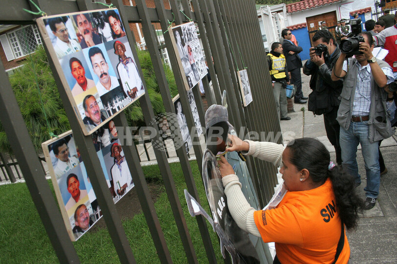 前日の22日には、ウリベ大統領のいとこのマリオ・ウリベ(Mario Uribe)元議員が逮捕されている。(c)AFP