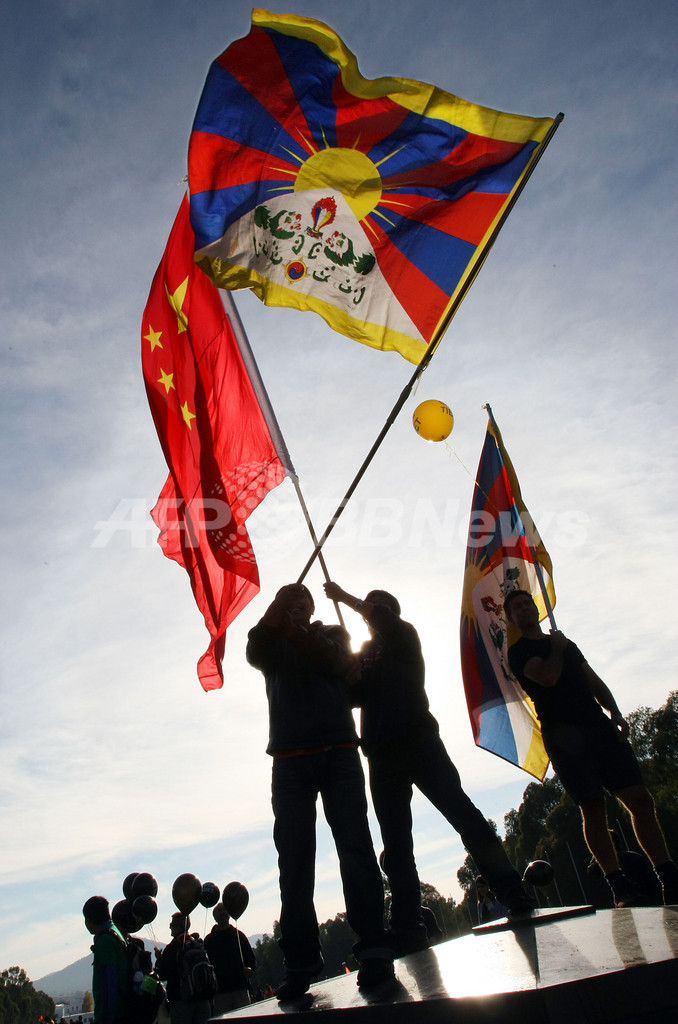 警察は中国支持派とチベット支持派が接近しないように努めたが、国会議事堂前などリレールート上数か所で衝突が発生した。ただし、オーストラリア五輪委員会(Australian Olympic Committee、AOC)は両派間の緊張感をサッカーの試合の雰囲気になぞらえ、聖火リレーは「おおむね平和的に進んでいる」と述べている。(c)AFP