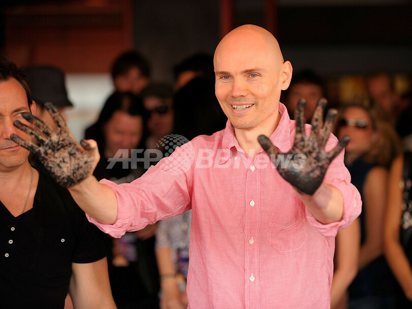 ロサンゼルス(Los Angeles)のギター・センター(Guitar Center)で行われた、ロックの殿堂「ハリウッド・ロック・ウォーク(Hollywood’s Rockwalk)」入りを記念する式典でポーズをとる米ロックバンド、スマッシング・パンプキンズ(The Smashing Pumpkins)のビリー・コーガン(Billy Corgan)。(c)AFP/Getty Images/Charley Gallay