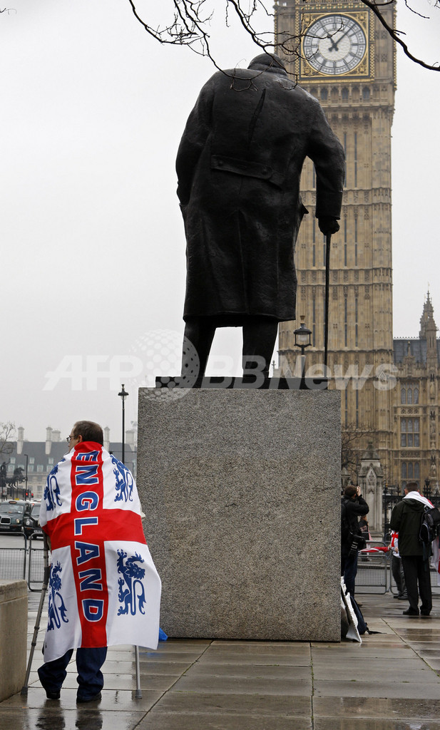 【4月24日 AFP】英ロンドン(London)の首相官邸では23日、イングランド旗である白地に赤十字、「聖ジョージ(Saint George)」の旗がはためいていた。