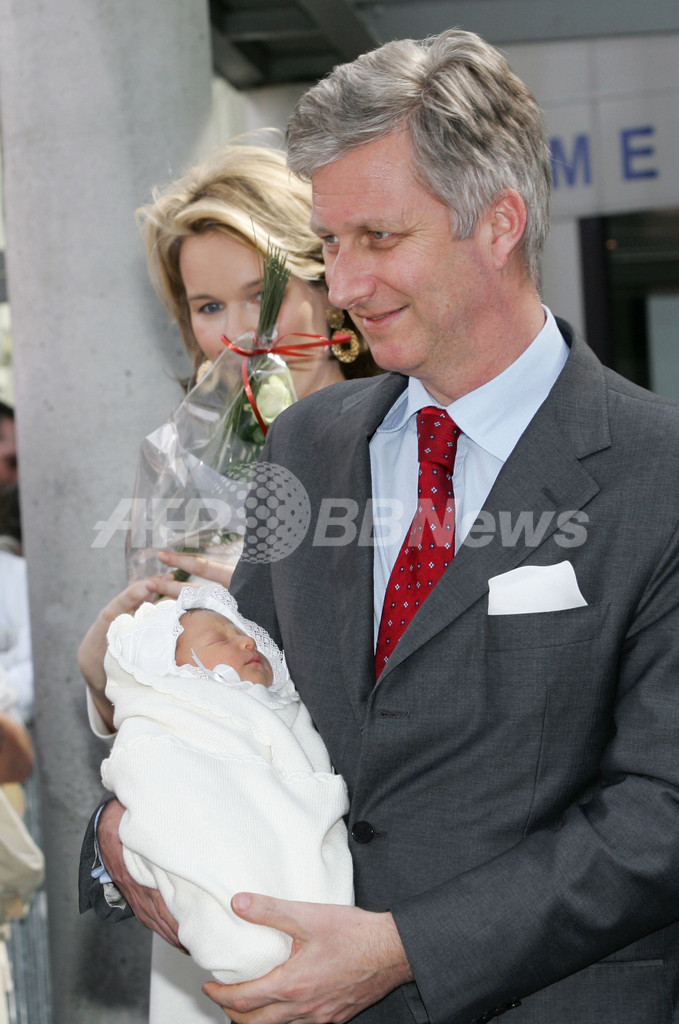 【4月25日 AFP】ベルギーで今月16日に第4子のエレオノール王女(Princess Eleonore)を出産したマチルド皇太子妃(Princess Mathilde)が21日、入院していたブリュッセル(Brussels)郊外アンデルレヒト(Anderlecht)のエラスムス(Erasmus)病院を退院した。退院に先立ち、皇太子妃は夫のフィリップ皇太子(Prince Philippe)と共に記者会見を行い、母子共に健やかな姿を見せた。(c)AFP