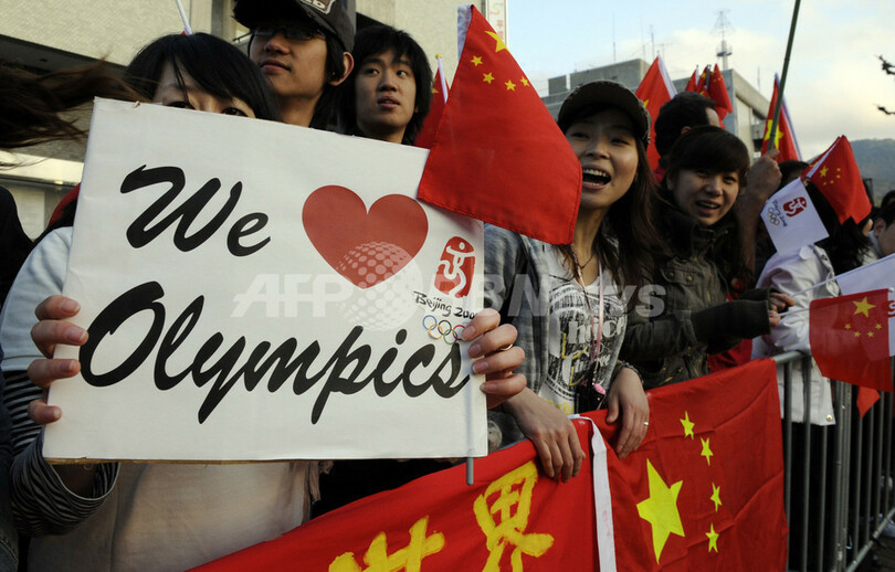 数千人の中国人留学生らがバスで到着する一方、日の丸旗を持ったおよそ100人が「中国人は帰れ」などと叫んでいた。チベット旗を持った人々も集まっている。