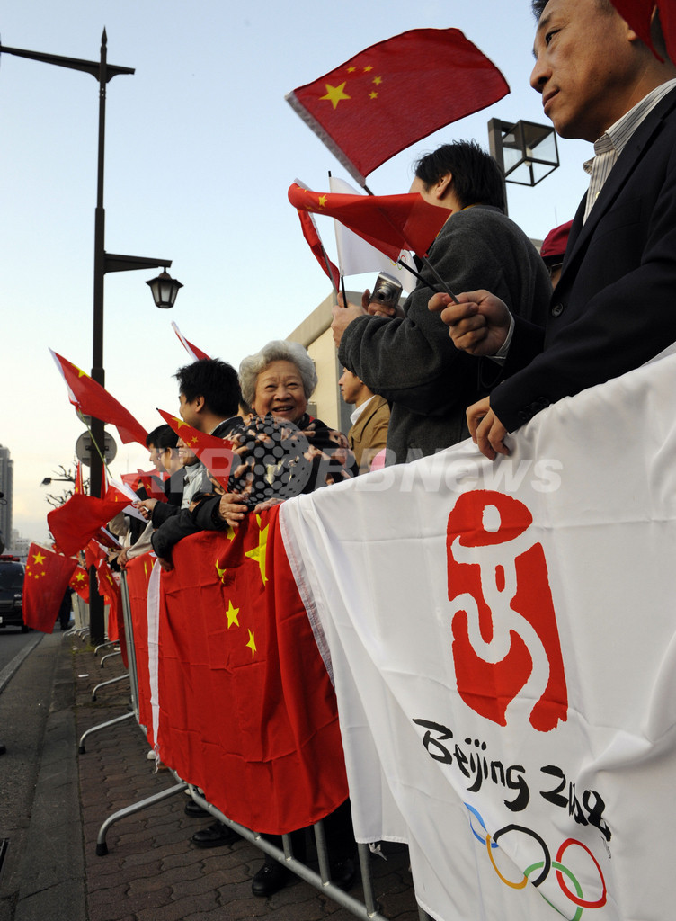 数千人の中国人留学生らがバスで到着する一方、日の丸旗を持ったおよそ100人が「中国人は帰れ」などと叫んでいた。チベット旗を持った人々も集まっている。