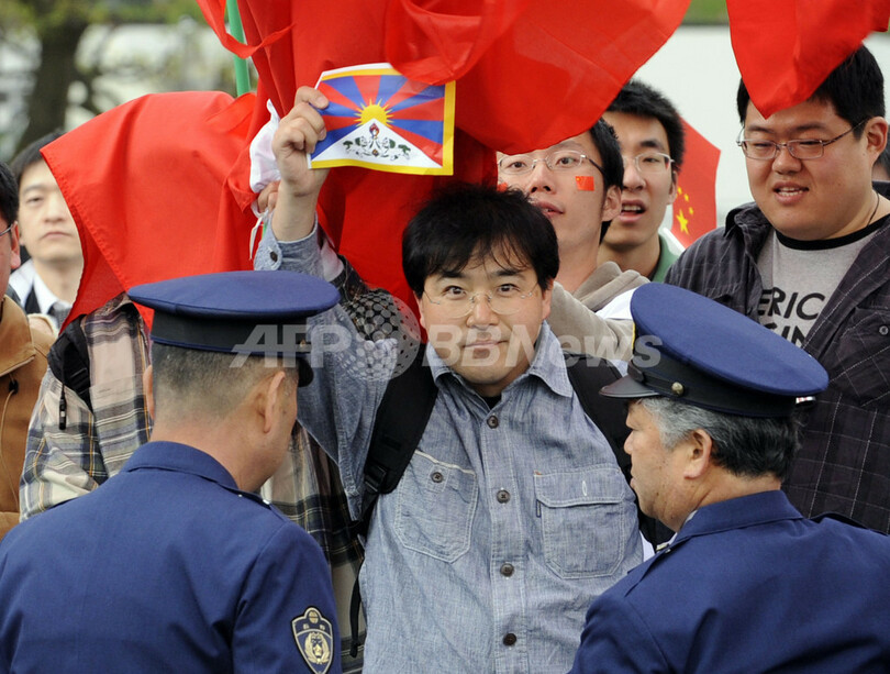 数千人の中国人留学生らがバスで到着する一方、日の丸旗を持ったおよそ100人が「中国人は帰れ」などと叫んでいた。チベット旗を持った人々も集まっている。