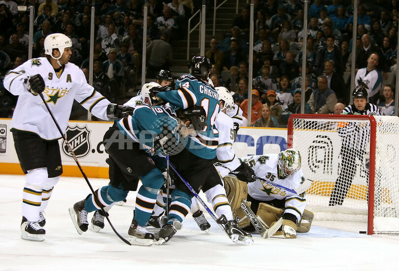 スポーツ ウインタースポーツ スターズ シャークスを下しプレーオフ準決勝・第1戦を白星で飾る 2008年4月26日 16:24 発信地:サンノゼ/米国 [ 北米 米国 ] このニュースをシェア ‹ › ❮ 6/6 ❯ 第2ピリオドに混戦の中、ゴールを死守するスターズのマーティー・ターコ(%%Marty Turco%%、右)。(2008年4月25日撮影)(c)AFP/Getty Images/Christian Petersen 画像作成中 ! 【4月26日 AFP】07-08NHL、西カンファレンス・プレーオフ準決勝。サンノゼ・シャークス(San Jose Sharks)vsダラス・スターズ(Dallas Stars)、第1戦。試合はスターズがオーバータイムの末、3-2でシャークスに勝利し、プレーオフ準決勝初戦を白星で飾った。(c)AFP/Getty Images ウインタースポーツ 一覧へ> メディア・報道関係・法人の方向け 写真・動画 購入のお問合せ>