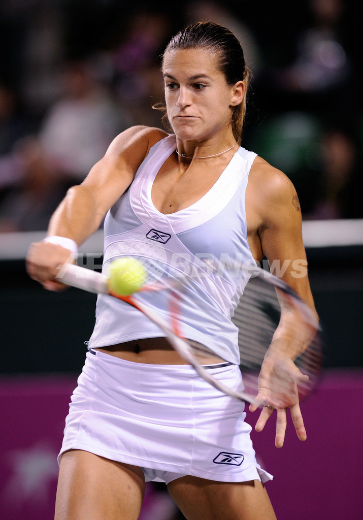 【4月26日 AFP】女子テニス、フェドカップ(2008 Fed Cup)・ワールドグループ・プレーオフ、日本vsフランス。フランスのアメリー・モウレズモ(Amelie Mauresmo)は、第1試合のシングルスで日本の森田あゆみ(Ayumi Morita)と対戦。試合はモウレズモがセットカウント2-0(6-0、6-2)のストレートで森田を下し、フランスは初戦を勝利で飾った。