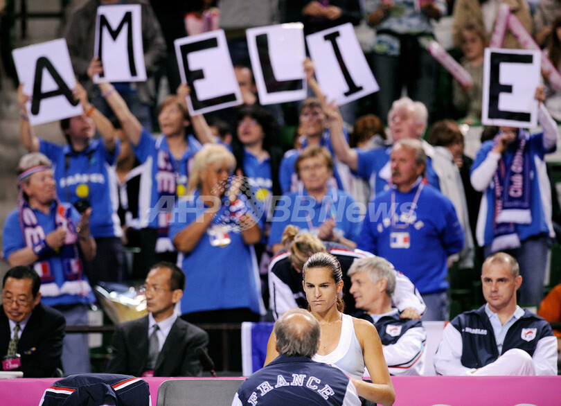 【4月26日 AFP】女子テニス、フェドカップ(2008 Fed Cup)・ワールドグループ・プレーオフ、日本vsフランス。フランスのアメリー・モウレズモ(Amelie Mauresmo)は、第1試合のシングルスで日本の森田あゆみ(Ayumi Morita)と対戦。試合はモウレズモがセットカウント2-0(6-0、6-2)のストレートで森田を下し、フランスは初戦を勝利で飾った。