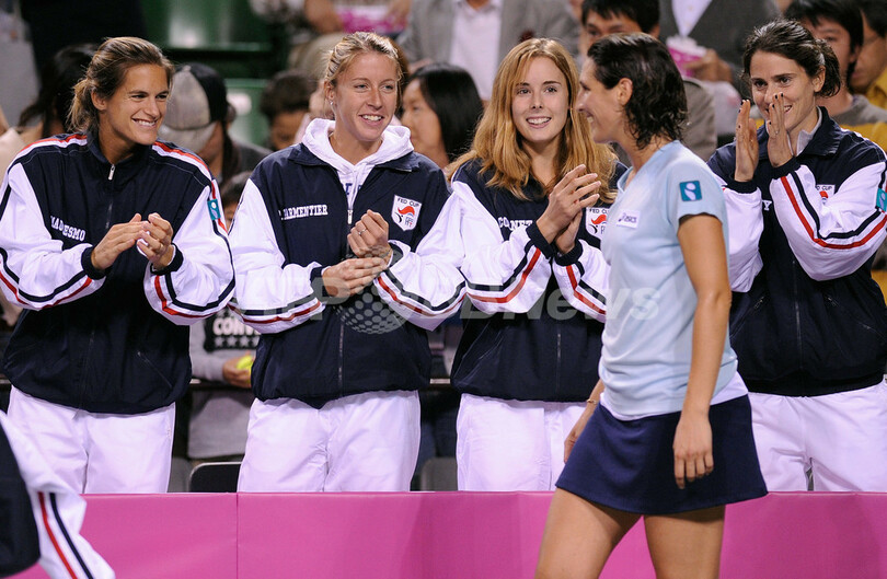 スポーツ テニス 杉山 ラザノに敗れ日本は2連敗 2008年4月26日 19:50 発信地:東京 [ アジア・オセアニア 東京 ] このニュースをシェア ‹ › ❮ 3/6 ❯ チームメイトと勝利の喜びを分かち合うビルジニー・ラザノ(右2)。(2008年4月26日撮影)(c)AFP/Toru YAMANAKA 画像作成中 ! 【4月26日 AFP】女子テニス、フェドカップ(2008 Fed Cup)・ワールドグループ・プレーオフ、日本vsフランス。日本の杉山愛(Ai Sugiyama)は、第2試合のシングルスでフランスのビルジニー・ラザノ(Virginie Razzano)と対戦。試合は杉山がセットカウント0-2(1-6、5-7)のストレートでラザノに敗れ、日本は2連敗を喫した。(c)AFP テニス 一覧へ> メディア・報道関係・法人の方向け 写真・動画 購入のお問合せ>