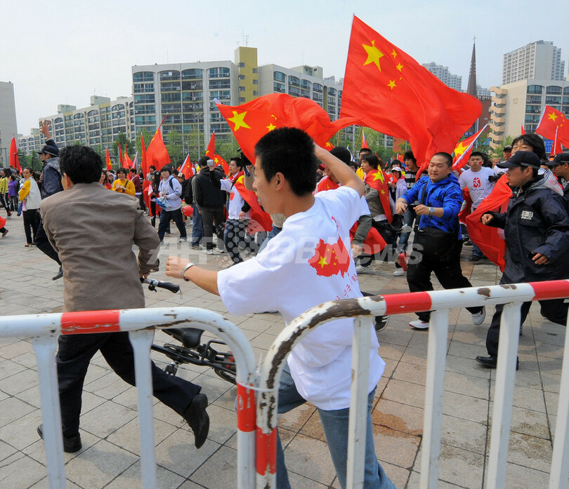 「ゴーゴー、チャイナ!」と叫ぶ中国人学生たちは、8月の北京五輪に水を差す行為を一切認めないという勢いだった。