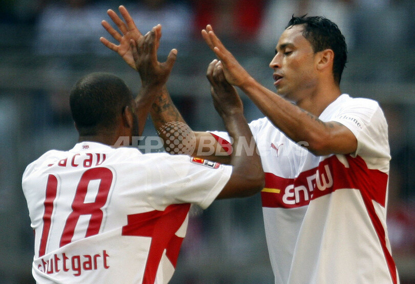 スポーツ サッカー バイエルン シュツットガルト下し勝ち点差広げる 2008年4月28日 9:35 発信地:ミュンヘン/ドイツ [ ヨーロッパ ドイツ ] このニュースをシェア ‹ › ❮ 6/6 ❯ 前半19分に1-1となる同点ゴールを決めチームメイトのカカウ(%%Cacau%%、左)から祝福を受けるシュツットガルトのアントニオ・ダ・シウヴァ(%%Antonio da Silva%%)。(2008年4月27日撮影)(c)AFP/DDP/OLIVER LANG 画像作成中 ! 【4月28日 AFP】07-08ドイツ・ブンデスリーガ1部・第30節、バイエルン・ミュンヘン(Bayern Munich)vsシュツットガルト(Stuttgart)。試合はフランク・リベリ(Franck Ribery)が2得点を記録したバイエルンが4-1でシュツットガルトを下し、リーグで2位につけるヴェルダー・ブレーメン(Werder Bremen)との勝ち点差を12に広げた。(c)AFP/Ryland James サッカー 一覧へ> メディア・報道関係・法人の方向け 写真・動画 購入のお問合せ>