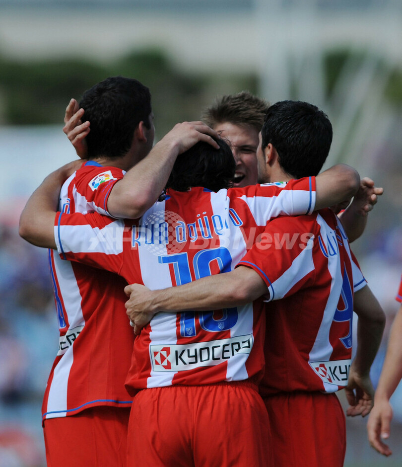 スポーツ サッカー アトレティコ・マドリード ヘタフェとのダービーを分ける 2008年4月28日 11:12 発信地:マドリード/スペイン [ ヨーロッパ スペイン ] このニュースをシェア ‹ › ❮ 7/11 ❯ 前半39分に同点ゴールを決めチームメイトと共に歓喜するアトレティコ・マドリードのセルヒオ・アグエロ(%%Sergio Aguero%%、中央)。(2008年4月27日撮影)(c)AFP/PIERRE-PHILIPPE MARCOU 画像作成中 ! 【4月28日 AFP】07-08スペイン・リーガエスパニョーラ1部・第34節、ヘタフェ(Getafe CF)vsアトレティコ・マドリード(Atletico de Madrid)。試合は1-1の引き分けに終わった。(c)AFP サッカー 一覧へ> メディア・報道関係・法人の方向け 写真・動画 購入のお問合せ>