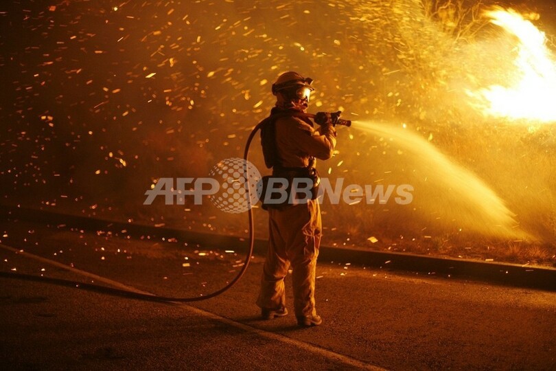 カリフォルニア州南部では、乾燥した気候や「サンタアナ(Santa Ana)」と呼ばれる強風、郊外や森林地帯にまで急速に進出する住宅事情などを背景に、大規模な山火事が頻発。2007年10月には住宅2000軒が焼失、死者7人、64万人が避難する同州史上最悪の山火事が発生している。この時の損害総額は10億ドル(約1000億円)規模に上った。(c)AFP