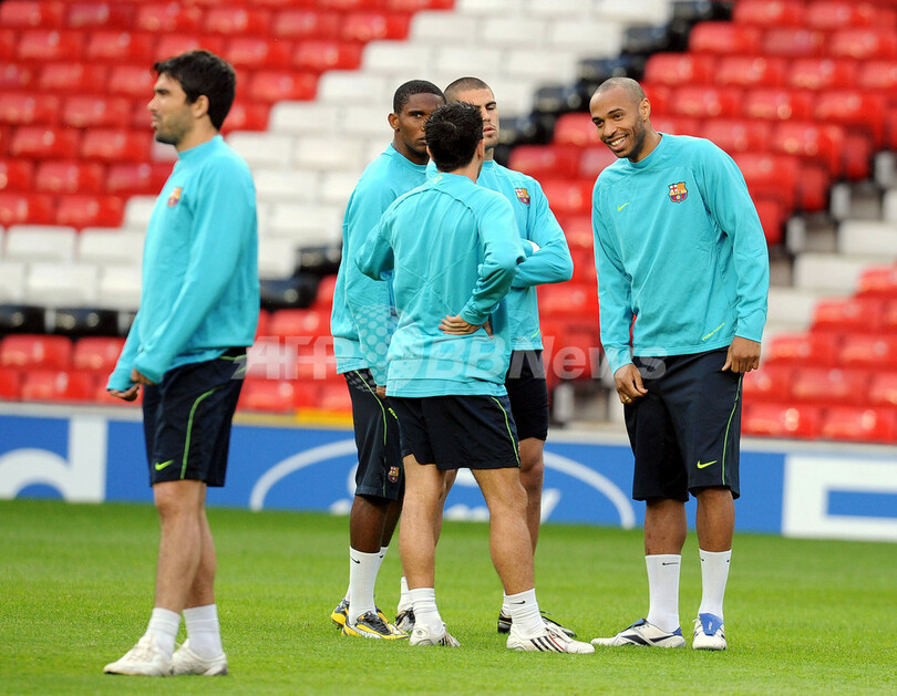 【4月29日 AFP】サッカー欧州チャンピオンズリーグ2007-08(UEFA Champions League 2007-08)・準決勝。マンチェスター・ユナイテッド(Manchester United)とのホームでの第1戦を0-0のスコアレスドローで終えているFCバルセロナ(FC Barcelona)は、29日に行われるアウェーでの第2戦に向け試合開催地のオールド・トラフォード(Old Trafford)で最終調整を行った。(c)AFP