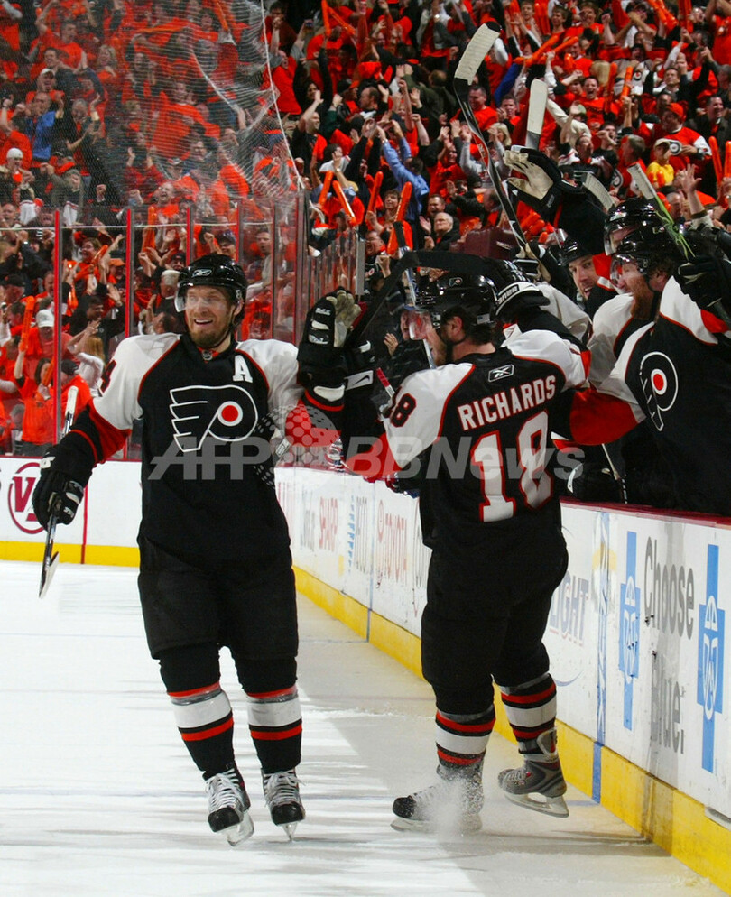 スポーツ ウインタースポーツ フライヤーズ カナディアンズ下し2連勝 2008年4月29日 13:31 発信地:フィラデルフィア/米国 [ 北米 米国 ] このニュースをシェア ‹ › ❮ 9/12 ❯ 第2ピリオドにチームの2得点目を決め、キモ・ティモネン(%%Kimmo Timonen%%、左)から祝福を受けるフライヤーズのマイク・リチャーズ(%%Mike Richards%%)。(2008年4月28日撮影)(c)AFP/Getty Images/Bruce Bennett 画像作成中 ! 【4月29日 AFP】07-08NHL、東カンファレンス・プレーオフ準決勝・フィラデルフィア・フライヤーズ(Philadelphia Flyers)vsモントリオール・カナディアンズ(Montreal Canadiens)、第3戦。試合はフライヤーズが3-2でカナディアンズに競り勝ち2連勝を飾り、通算成績を2勝1敗とした。(c)AFP/Getty Images ウインタースポーツ 一覧へ> メディア・報道関係・法人の方向け 写真・動画 購入のお問合せ>