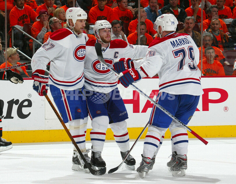 スポーツ ウインタースポーツ フライヤーズ カナディアンズ下し2連勝 2008年4月29日 13:31 発信地:フィラデルフィア/米国 [ 北米 米国 ] このニュースをシェア ‹ › ❮ 4/12 ❯ 第3ピリオドにチームの2得点目を決めアレックス・コバレフ(%%Alex Kovalev%%、左)やアンドレイ・マルコフ(%%Andrei Markov%%)から祝福を受けるカナディアンズのサク・コイブ(%%Saku Koivu%%、中央)。(2008年4月28日撮影)(c)AFP/Getty Images/Bruce Bennett 画像作成中 ! 【4月29日 AFP】07-08NHL、東カンファレンス・プレーオフ準決勝・フィラデルフィア・フライヤーズ(Philadelphia Flyers)vsモントリオール・カナディアンズ(Montreal Canadiens)、第3戦。試合はフライヤーズが3-2でカナディアンズに競り勝ち2連勝を飾り、通算成績を2勝1敗とした。(c)AFP/Getty Images ウインタースポーツ 一覧へ> メディア・報道関係・法人の方向け 写真・動画 購入のお問合せ>