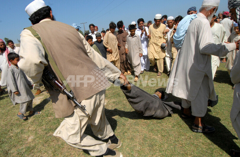 【4月29日 AFP】パキスタン領内で活動するアフガニスタン旧政権のイスラム原理主義組織タリバン(Taliban)の武装勢力は、アフガニスタン国境の部族地域で身代金目的の誘拐に関与したとみられる人物を公開処刑した。目撃者が28日、語った。