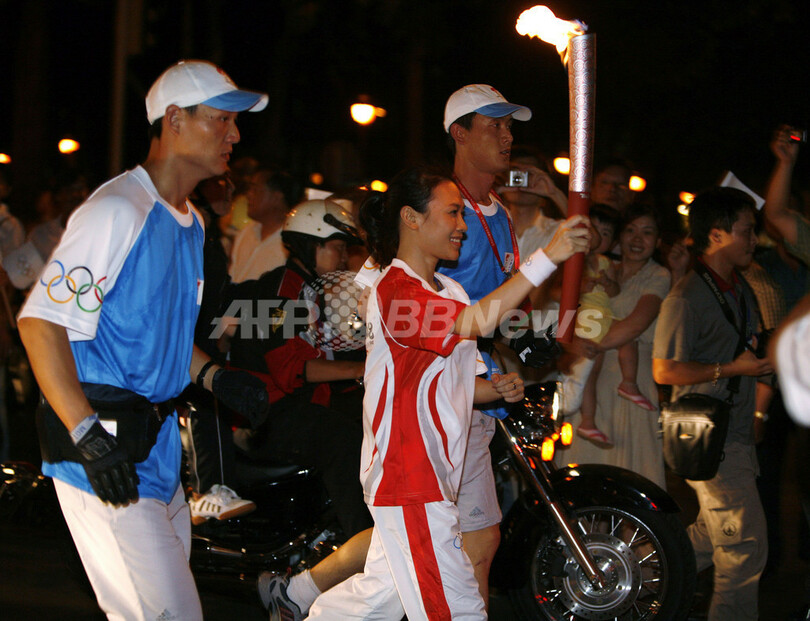 同国国営テレビは、聖火リレーを生中継しなかった。(c)AFP