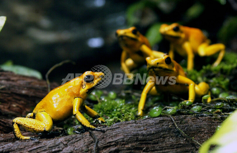 ニュース 環境・科学 動物園で両生類の特別展示、コロンビア 2008年4月30日 14:27 発信地:カリ/コロンビア [ 中南米 コロンビア ] このニュースをシェア ‹ › ❮ 3/5 ❯ コロンビア西部バジェ・デル・カウカ(Valle del Cauca)県カリ(Cali)のカリ動物園(Cali Zoo)での両生類展で公開中のGilthead Frog(学名:Atelopus zetequis)。(c)AFP/Carlos Julio Martinez 画像作成中 ! 【4月30日 AFP】南米コロンビア西部バジェ・デル・カウカ(Valle del Cauca)県カリ(Cali)のカリ動物園(Cali Zoo)で両生類の特別展示が行われている。コロンビアに生息する両生類は733種に上り、751種の両性類が生息するブラジルに次いで世界で2番目に多い。(c)AFP 環境・科学 一覧へ> メディア・報道関係・法人の方向け 写真・動画 購入のお問合せ>