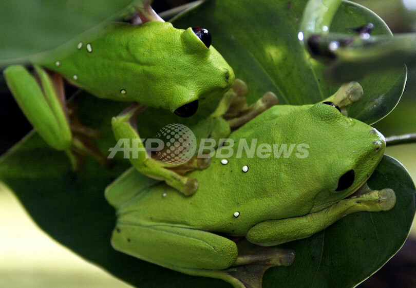 ニュース 環境・科学 動物園で両生類の特別展示、コロンビア 2008年4月30日 14:27 発信地:カリ/コロンビア [ 中南米 コロンビア ] このニュースをシェア ‹ › ❮ 2/5 ❯ コロンビア西部バジェ・デル・カウカ(Valle del Cauca)県カリ(Cali)のカリ動物園(Cali Zoo)での両生類展で公開中のイエアメガエル(学名:Litoria Caerulea)。(c)AFP/Carlos Julio Martinez 画像作成中 ! 【4月30日 AFP】南米コロンビア西部バジェ・デル・カウカ(Valle del Cauca)県カリ(Cali)のカリ動物園(Cali Zoo)で両生類の特別展示が行われている。コロンビアに生息する両生類は733種に上り、751種の両性類が生息するブラジルに次いで世界で2番目に多い。(c)AFP 環境・科学 一覧へ> メディア・報道関係・法人の方向け 写真・動画 購入のお問合せ>