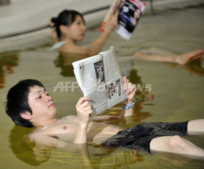 ニュース ライフ 浮いたまま読書もできます、「箱根小涌園ユネッサン」の死海風呂 2008年5月1日 11:42 発信地:神奈川 [ アジア・オセアニア 神奈川 ] このニュースをシェア ‹ › ❮ 8/8 ❯ 箱根にあるリゾートスパ「箱根小涌園ユネッサン(Hakone Kowakien Yunessun)」で、死海風呂を楽しむ人々(2008年4月30日撮影)。(c)AFP/Yoshikazu TSUNO 画像作成中 ! 【5月1日 AFP】箱根にあるリゾートスパ「箱根小涌園ユネッサン(Hakone Kowakien Yunessun)」の「死海風呂」を楽しむ来場者たち。死海風呂のお湯はイスラエルの死海と同じ塩分濃度になっている。箱根小涌園ユネッサンは、2001年の創業からの来訪者数が1000万人を突破した。(c)AFP ライフ 一覧へ> メディア・報道関係・法人の方向け 写真・動画 購入のお問合せ>