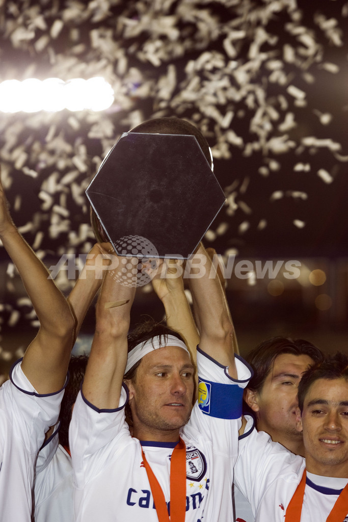 スポーツ サッカー パチューカ 北中米・カリブ海チャンピオンズカップ2連覇を達成 2008年5月1日 14:07 発信地:パチューカ/メキシコ [ 中南米 メキシコ ] このニュースをシェア ‹ › ❮ 3/9 ❯ 北中米・カリブ海チャンピオンズカップを制覇し、トロフィーを掲げるパチューカのガブリエル・カバジェロ(%%Gabriel Caballero%%)。(2008年4月30日撮影)(c)AFP/Ronaldo SCHEMIDT 画像作成中 ! 【4月24日 AFP】サッカー、北中米・カリブ海チャンピオンズカップ2008(CONCACAF Champions'Cup 2008)決勝、CFパチューカ(CF Pachuca)vsデポルティボ・サプリサ(Deportivo Saprissa)第2戦。試合はパチューカが2-1で勝利し、2試合合計スコアを3-2として大会連覇を達成した。(c)AFP サッカー 一覧へ> メディア・報道関係・法人の方向け 写真・動画 購入のお問合せ>
